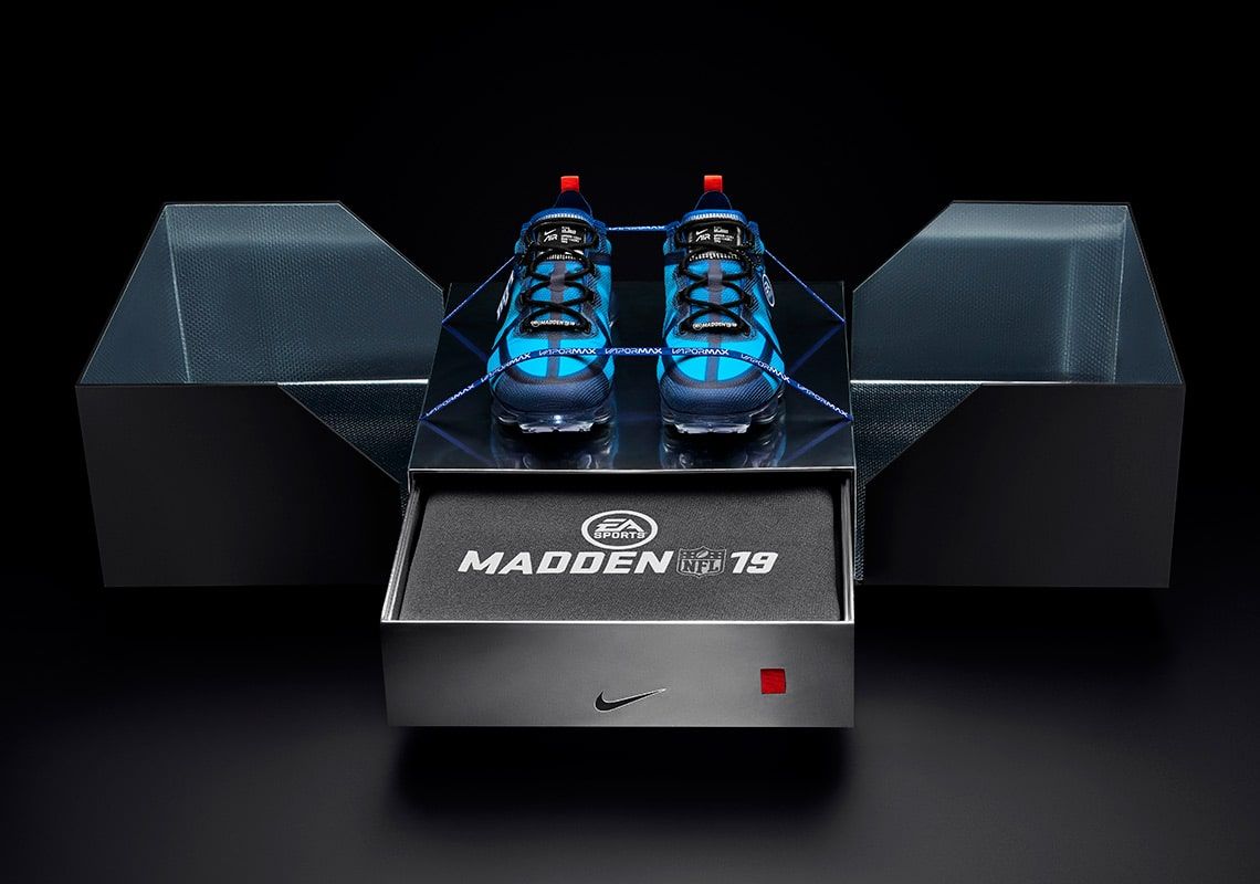 EA Sports celebrates Super Bowl LIII between the Los Angels Rams and New England Patriots with a special edition Madden Pack highlighted by the Nike Air VaporMax 2019, as well as a short-sleeve Fuse Showout hoodie.