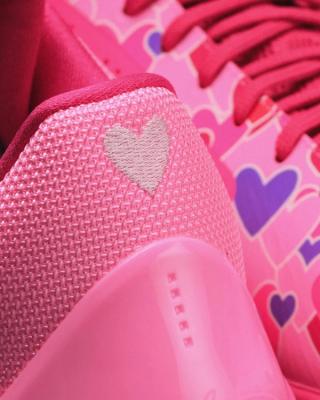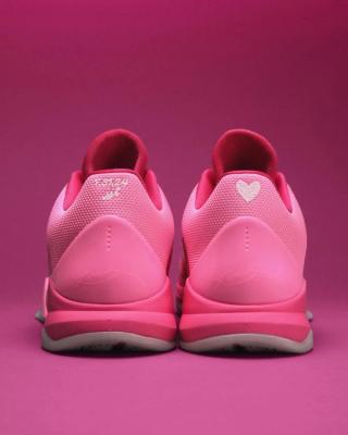 The Nike Kobe 5 PE “Jordyn” arrives in a vibrant pink palette, layered with an all-over heart print that mirrors the pattern seen on Jordyn’s pajamas. The pair also features his daughter's birthday on the left pair. It’s a playful design, blending the Kobe 5’s performance-driven build with a softer, more personal narrative.