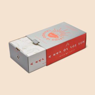 Crafted in Montebelluna, Italy (Nike’s go-to location for premium footwear production), the shoe boasts a luxe aesthetic in tan and light crimson hues. The phrase Raggio di sole—Italian for “ray of sunshine”—is printed on both the insoles and the shoebox, anchoring the design in personal and cultural storytelling.