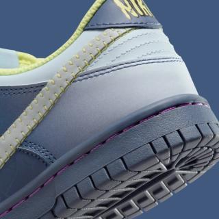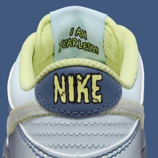 The Nike Dunk Low "Fearless" offers a delightful blend of muted slate blue hues that fade to white as the design expands towards the toe and heel. Frankenstein-inspired stitching that adorns the reflective Swooshes and tongue branding adds a sense of whimsy to the shoe, connecting it to the playful horror theme of Halloween.