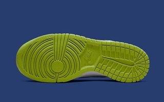 Though it bears a close resemblance to the full-sized release, this kids-exclusive colorway adds a few tweaks to create a slight separation between the big and little footers. Firstly, you’ll notice a Grind Rubber-flecked sole unit, with the addition of contrast stitching and slime green outsoles. Above this, much remains the same, including the colorful Five Swoosh collage atop a stark navy Swoosh, but its upper is shifted to subtle greys as opposed to stark white and mid-grey seen on the adults release. There’s also the addition of a mesh collar, and light blue laces, too.