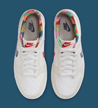 In keeping with the playful spirit of the children's collection, the Dunk Low retains the multi-color and multi-pattern liners from its Air Force 1 sibling, infusing a sense of whimsy into the shoe. However, the striking difference can be noticed in the pair's split-blocked paisley print swooshes that bring a new style element to the series. Additionally, similar to the Air Force 1, the Dunk Low features metallic silver heel overlays and modified heel branding.