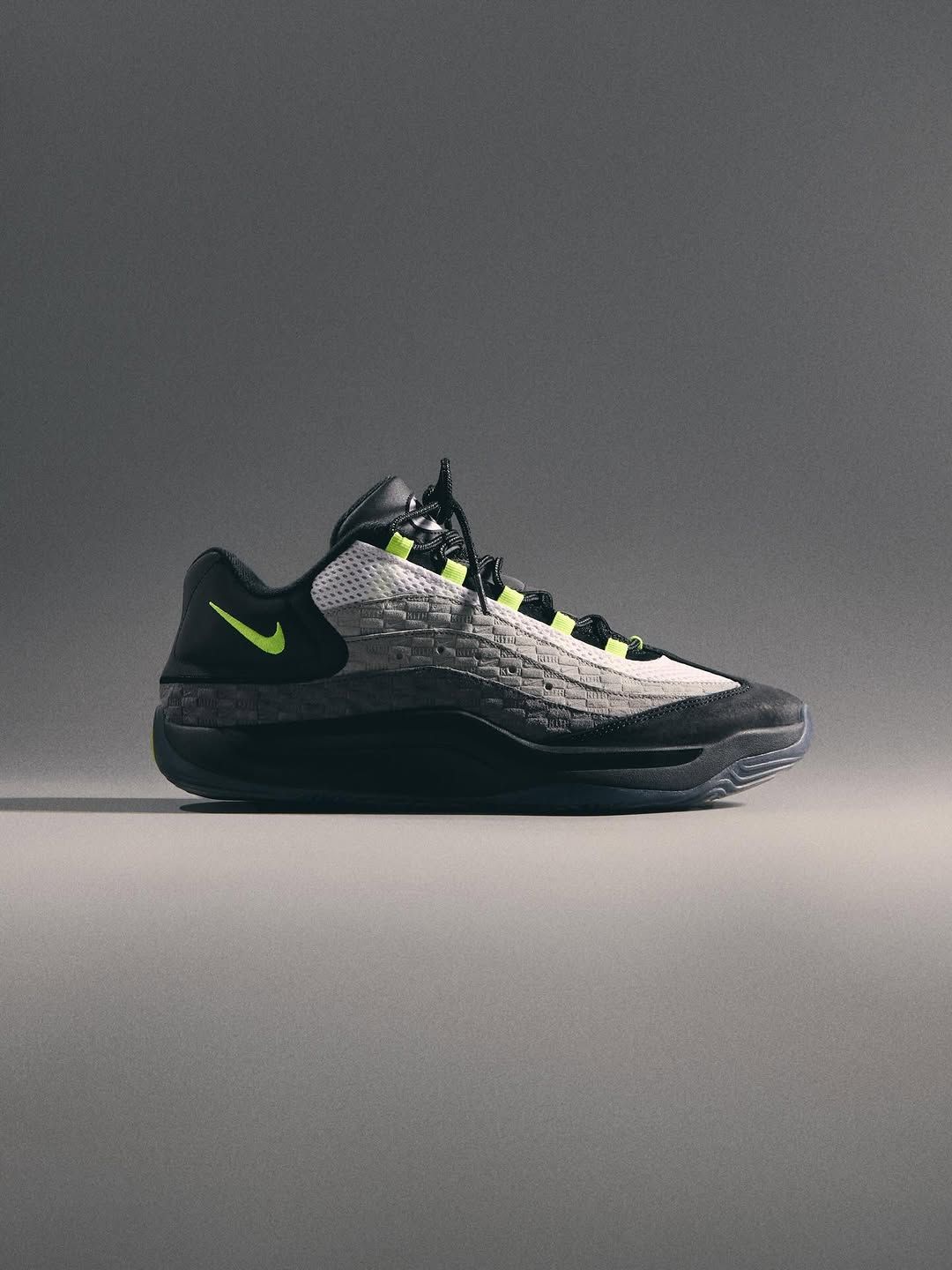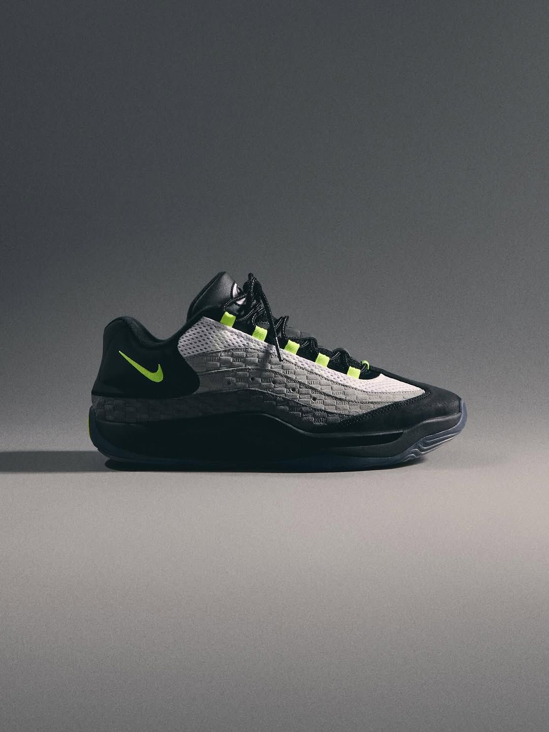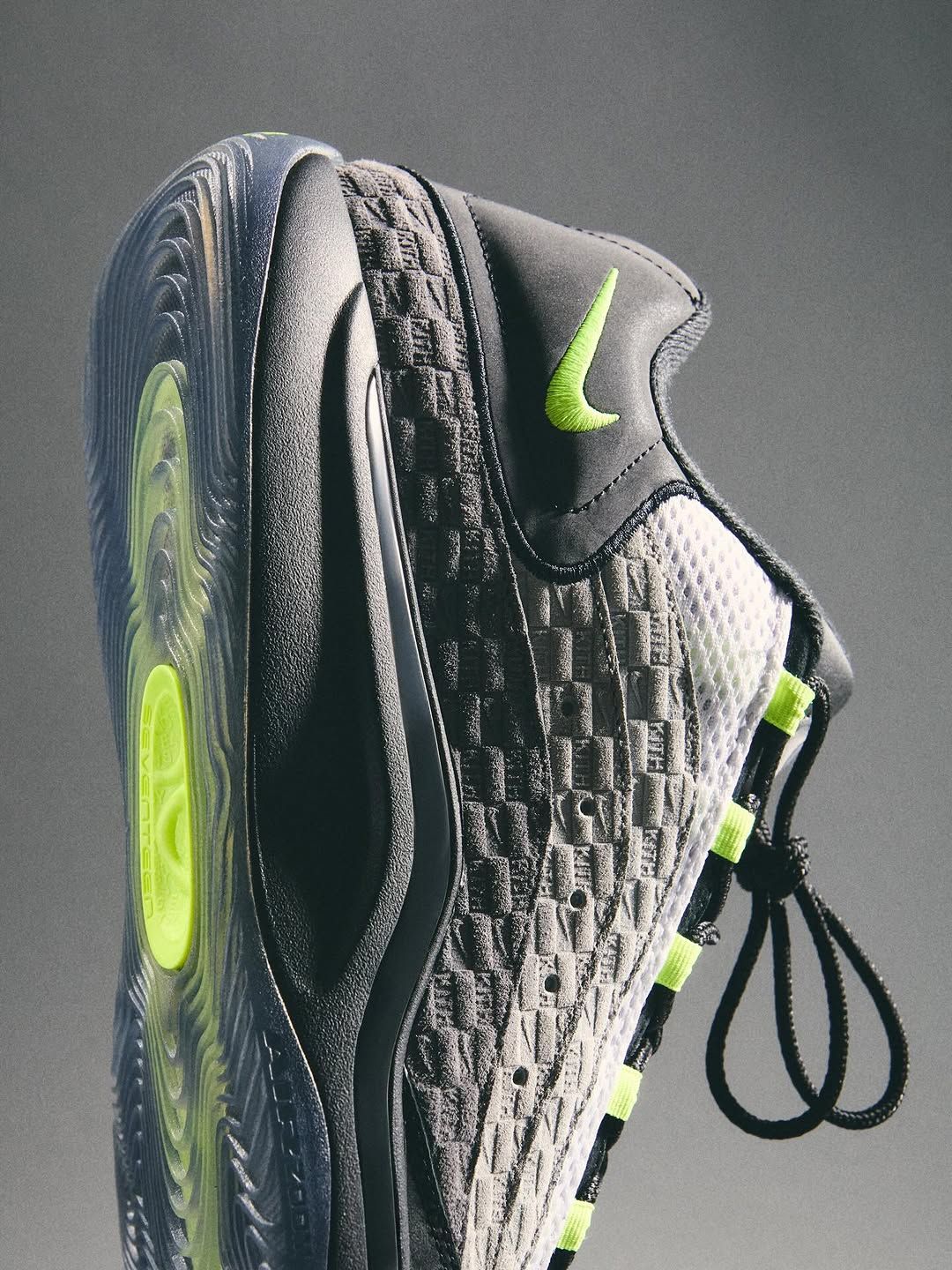 As with Fieg's own work on the AM95, the newly-surfaced Nike KD sees premium suede panels across the upper, debossed with Kith wordmarks. The greyscale medley is met with eye-catching, near-fluorescent hits of neon along the tongue and in the form of lateral swooshes. Elsewhere, the silhouette maintains its performance-first elements.