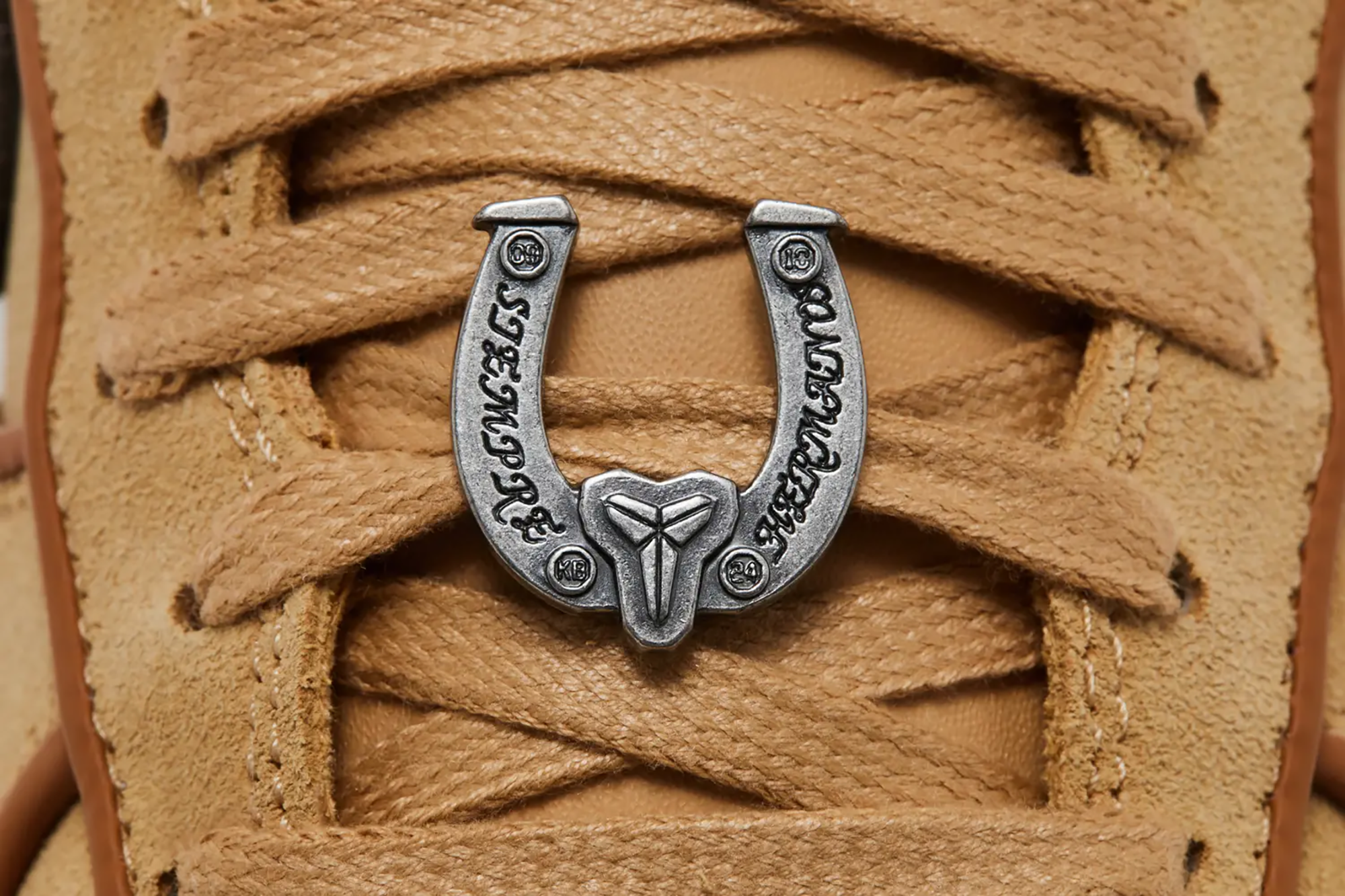 Detailed shots from after-market platform GOAT showcase the latest reworked AF-1 in the Nike Kobe partnership, in all its "Twine/Baroque Brown/Flax/Light Cream/Ocean Cube/Metallic Dark Grey" glory. Perhaps less-expected, the Protro offering sees stitch lines around the heel that evoke images of Western-wear. Furthermore, the laces feature a horse shoe-shaped attachment that includes the Spanish phrase "Siempre Hermanos," which translates into English to mean "Always Brothers." When reading this message alongside the "09" and "10" numerals also found on the detachable decoration, it becomes obvious that the project commemorates Bryant's brotherhood with Gasol.