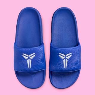 Official images showcase the Hyper Blue slide, featuring a snakeskin-like texture on the upper strap, a nod to Bryant’s “Black Mamba” legacy. The Kobe logo is prominently placed on the strap, reinforcing the connection to the late basketball icon.