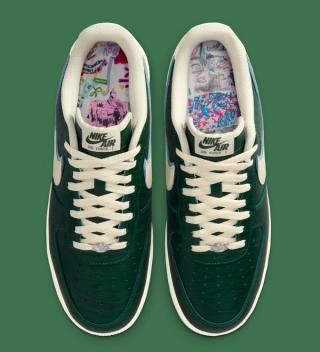A rich green color takes over the bulk of the sneaker's upper, referencing the wooden boards. Off white accents enter the mix across profile swooshes, inner lining, and midsoles, creating a straightforward, but detailed presentation on Bruce Kilgore's decades-old design. Custom lace dubraes, footbeds, and packaging help LAAMS leave its mark within the annals of Swoosh history.