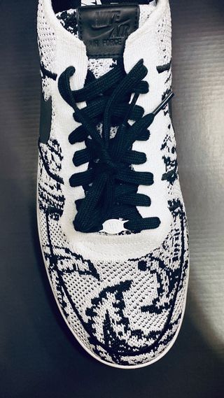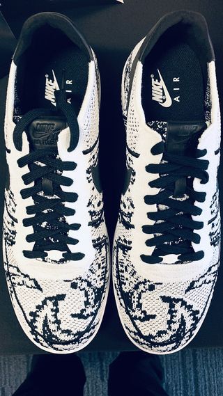 The pair arrives in monochrome white and black, combining modern materials on a vintage 80’s silhouette, with a heritage print, the sneaker remarkably encapsulates multi-century design language. Further premium details on the Kings Forces include the buttery leather tongue patch and white AF-1 ’82 lace dubrae. It come complete on an unadulterated Air Force 1 white sole unit.