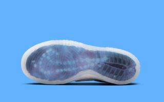 This release sees crisp white leather underlays paired with glossy Brave Blue overlays, which feature cosmic-style graphics. LEGO®-themed constellations appear throughout, with studs and bricks illustrated against a galactic backdrop. A translucent outsole adds another layer of detail, showcasing space-inspired motifs beneath the foot.