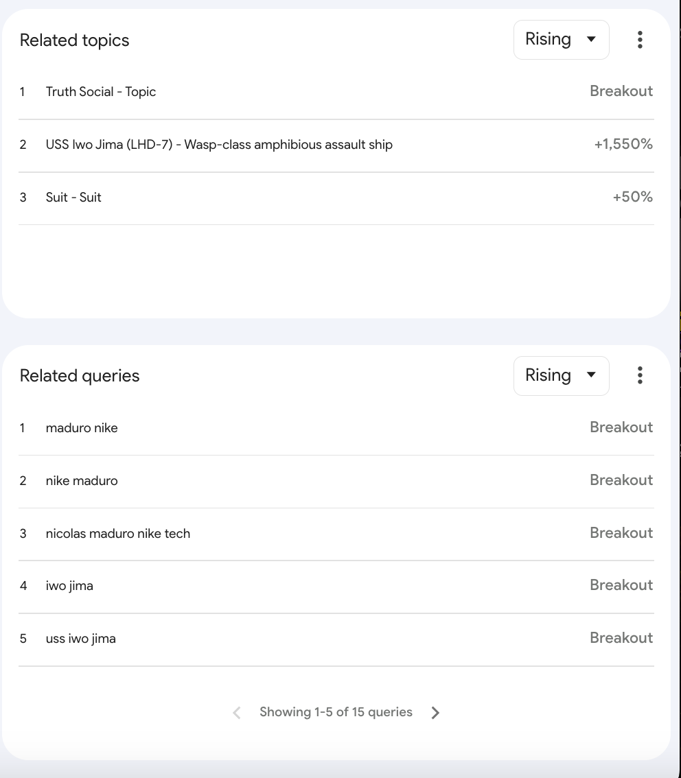 Interest in Nike Tech Fleece surged today after the image of Venezuelan president Nicolás Maduro wearing the popular apparel circulated widely across social media. The photo quickly became a viral moment, prompting users around the world to search for more information about the clothing featured in the image.