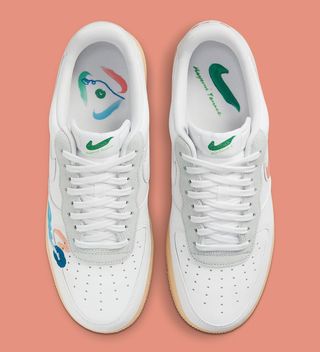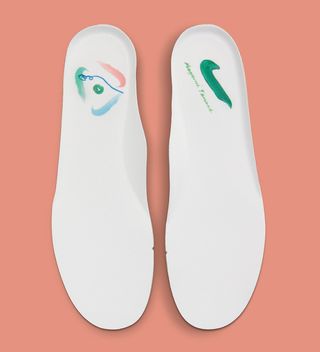 Arriving atop a jelly gum sole unit, the white leather, canvas, and suede construction above is delivered minimally, with only a handful of brushstrokes and embroidered marks to be found. Each foot presents it own unique finish, with bold terracotta, blue, orange, and green forming the accentuation’s palette. Notable Swoosh strokes are met by nondescript shapes upon the opposite side, while insoles, tongues, and heels branding feature more free-hand finishes.