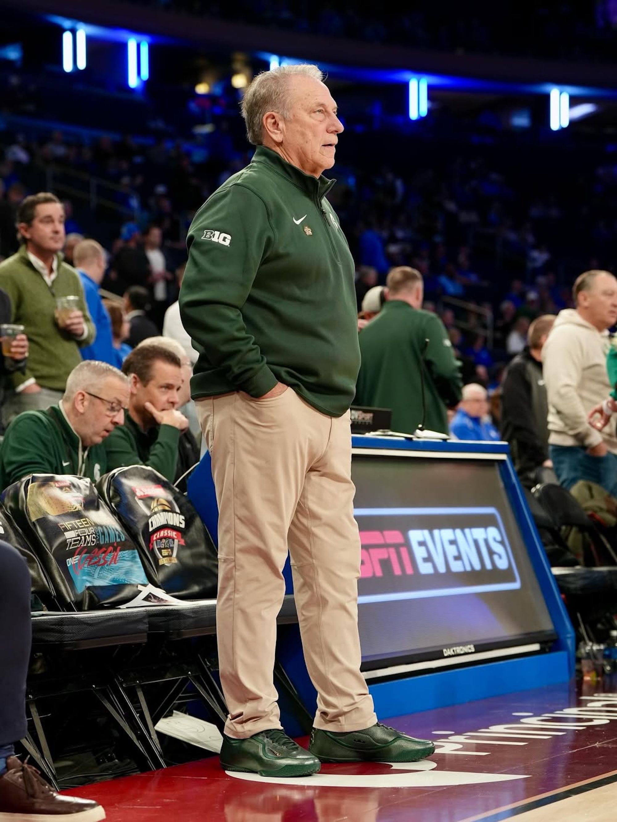 Clad in a Spartan-friendly green-and-gold color scheme, the modern Nike Basketball signature model features specific nods to the college athletics program at the heel, just as mainline versions of the sneaker commemorate different stories from James' hoops career. Even Coach Tom Izzo laced up the special pair court-side, modeling just how well the gift to the Michigan State team matches with Spartan-related gear.