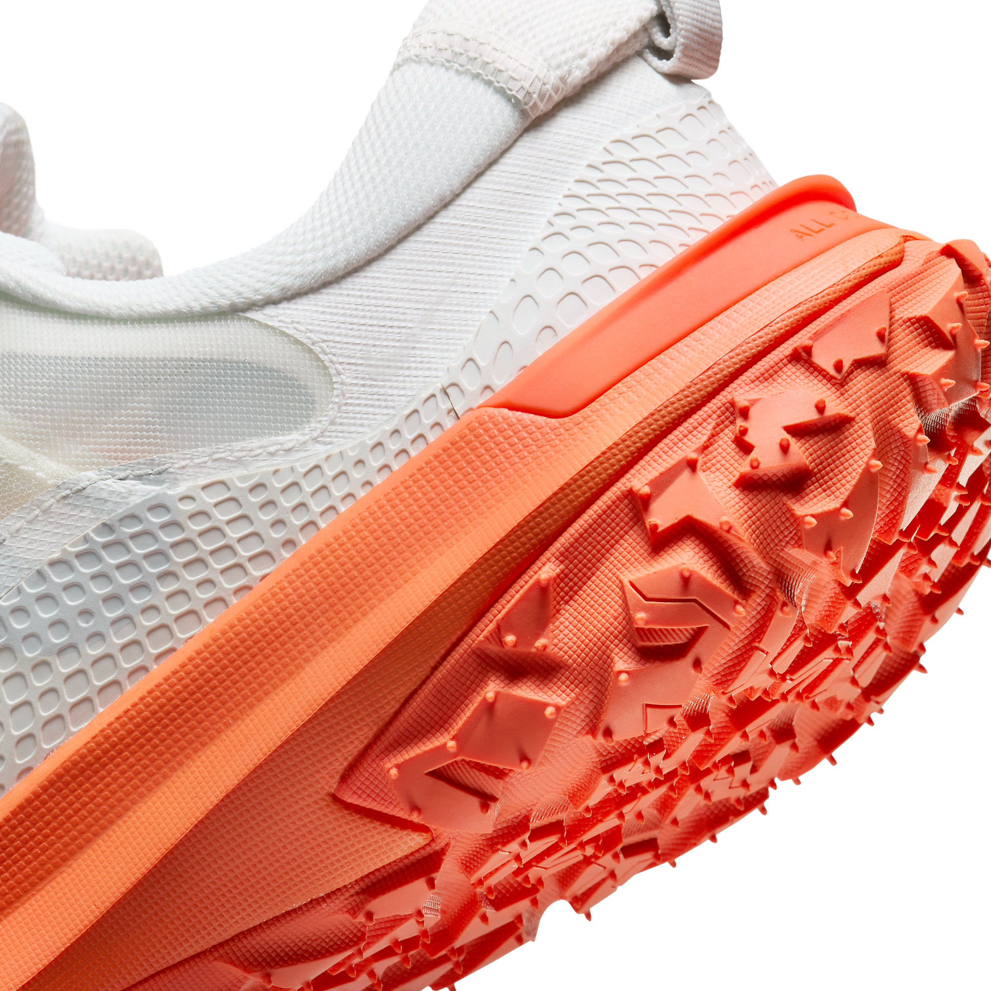 Beyond its functional attributes, the Nike ACG Mountain Fly 2 Low in "Peak White" stands out for its aesthetic appeal. The all-white mesh upper paired with the striking traffic orange sole makes for a sneaker that's as stylish as it is practical. It's a testament to Nike ACG's ability to merge outdoor functionality with urban sensibility, making this sneaker a versatile choice for both trail and casual wear.