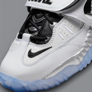 Here, Nike started out fairly simply with a white leather upper and strap overlays before introducing black at the tongues, eyestay overlays, and embroidered Swooshes. From there, Nike deploys a slew of silver hits ranging from the midsole to the interchangeable windows to the strap and tongue branding. All of this rests atop a semi-translucent ice outsole to compete the design.