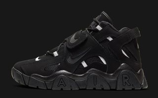 The fifth installment of Nike’s Air Barrageresurgence has surfaced in a back-to-basics black. The all-new take on the mid-90s cross-trainer takes an almost-all-black approach, giving the aggressively-designed silhouette a much-needed break from bold, boisterous colorways. There are only a handful of contrasting hits on this pair — all of which arrive in white — the embroidered Swoosh at the toebox, the extended eyelet ribbon, heel Nike Air branding, and insole print — that’s it. Everything else arrives in all-black mesh, nubuck, and rubber.