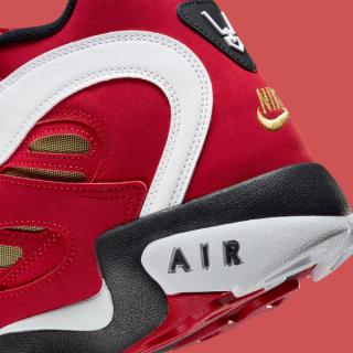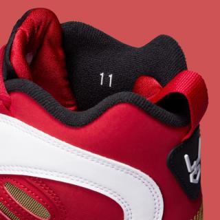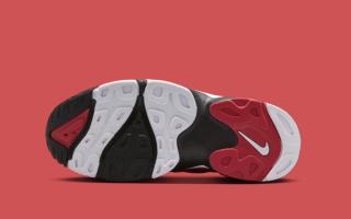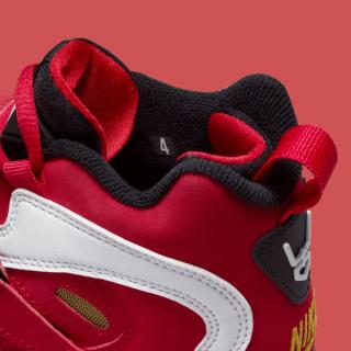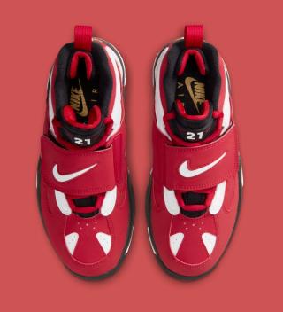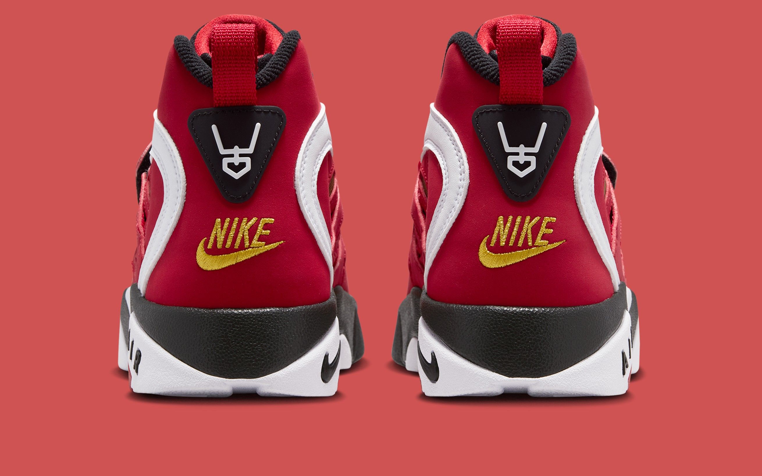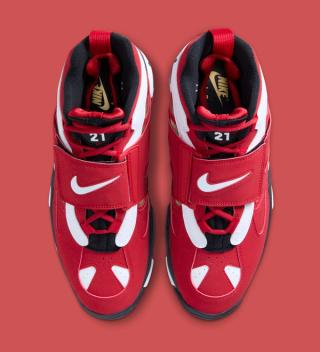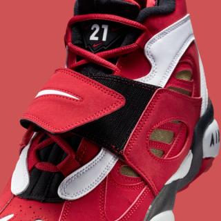 The 2026 edition of the Nike Air Diamond Turf 2 “Fire Red” sticks closely to the formula that made the silhouette one of the most recognizable trainers of the 90s. The midfoot strap returns as the signature focal point, paired with the model’s distinctive cutouts and sculpted paneling across the upper. A crisp mix of fire-red synthetic leather, white overlays, and black trim echoes the original blocking, while a gold mesh underlay nods to the Diamond Turf DNA that defined Deion’s dual-sport era.