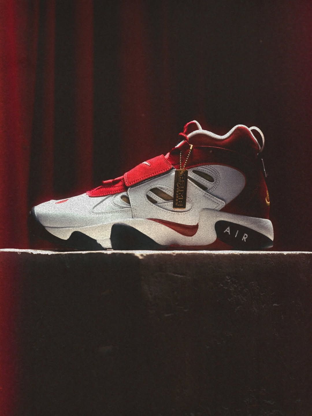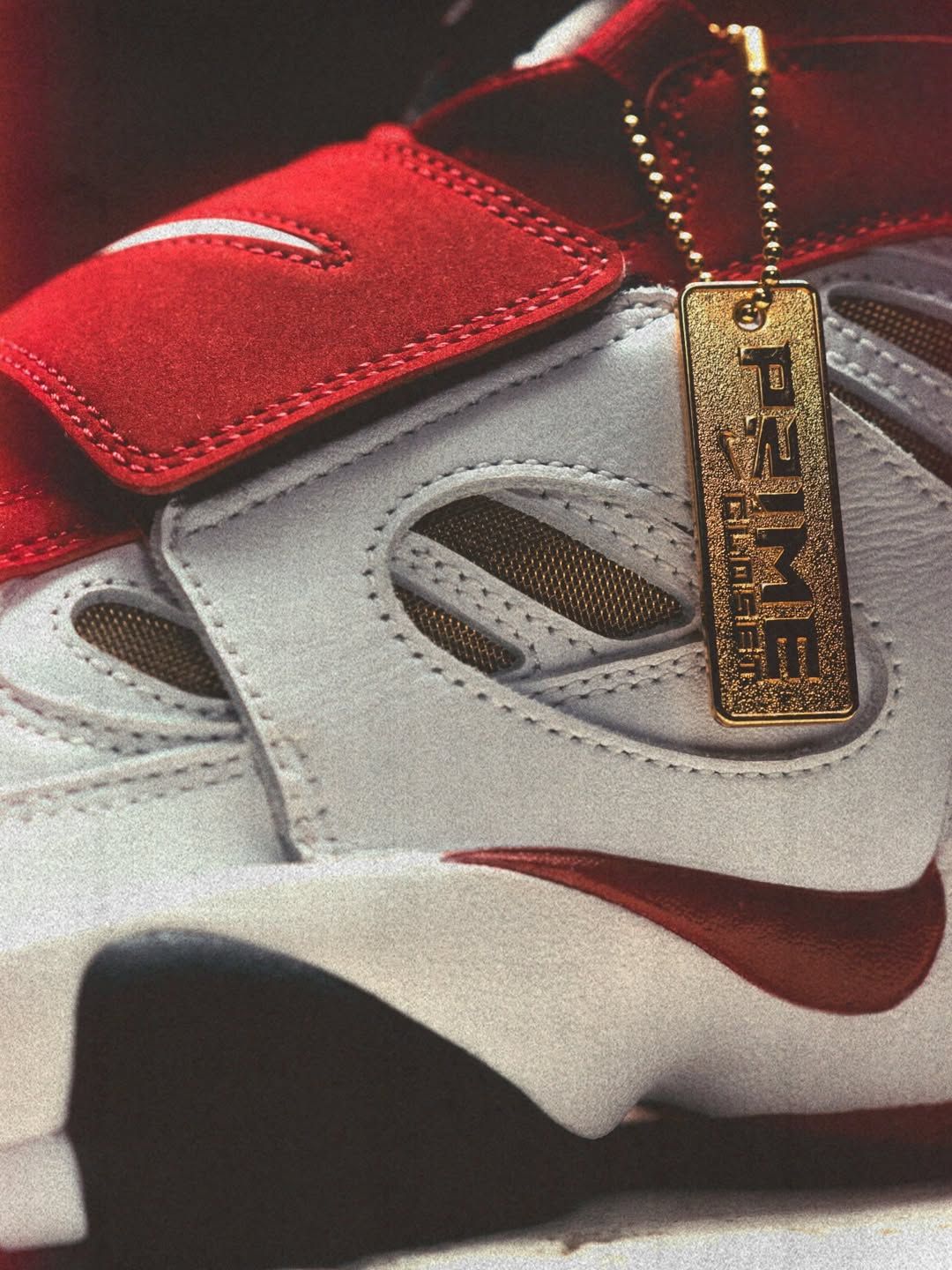The drop revisits Deion Sanders’ iconic cross-trainer through the Prime Closet lens, flipping the familiar color blocking into a bold “Reverse” execution. The design keeps the model’s signature elements intact, including the midfoot strap, sculpted overlays, and chunky Air-cushioned sole, while introducing a refined mix of red, grey, and black tones. A gold Prime Closet hangtag adds a finishing detail tied to the shoe’s legacy.