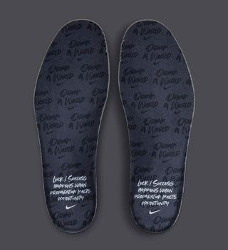 In line with more than a handful of positive-driven Nike campaigns from over the years, this release reiterates the dream big mantra through special messages on the insole and boxing. The monochrome exterior arrives in upscaled tooling, with plush suede eyestays and collars, patent leather pulls, and artistic touches applied to the Foamposite shell and carbon fiber plate. Branding is delivered in black on black, save the bright white 1 Cent logo underfoot that completes the design.
