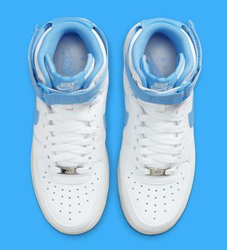 For its 40th anniversary, Nike is looking back at the communities that played a pivotal role in the early days of the Air Force 1’s success. From “Bronx Origins” releases to celebrate the Puerto Ricanand Ghanian communities, Nike is trawling back through the archives to celebrate the day one-ers. For Baltimore, it was the Three Amigos — Cinderella, Rudo Sports, and Downtown Locker Room — who pioneered the initial “Color of the Month” program, which essentially was the brand’s first dive into retro releasing. Each month, the High tops would sell out in weeks (a feat unheard of at the time), showing Nike that there was a huge demand for certain retrospective designs. Though details on that era are hard to come by, this new Air Force 1 High “University Blue” could well have been one of those, as it shares identical blocking to the original “Royal” release — and it does, in fact, resemble the “Columbia Blue” colorway from the early 2000s.