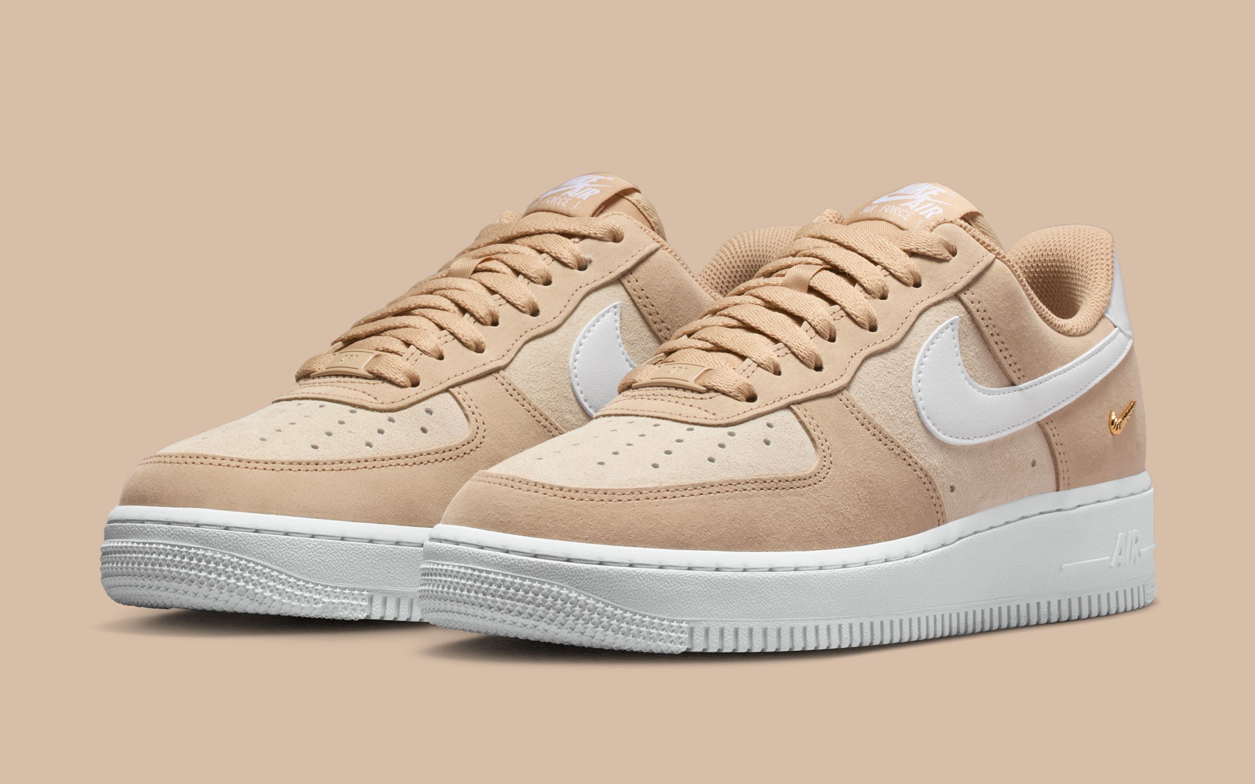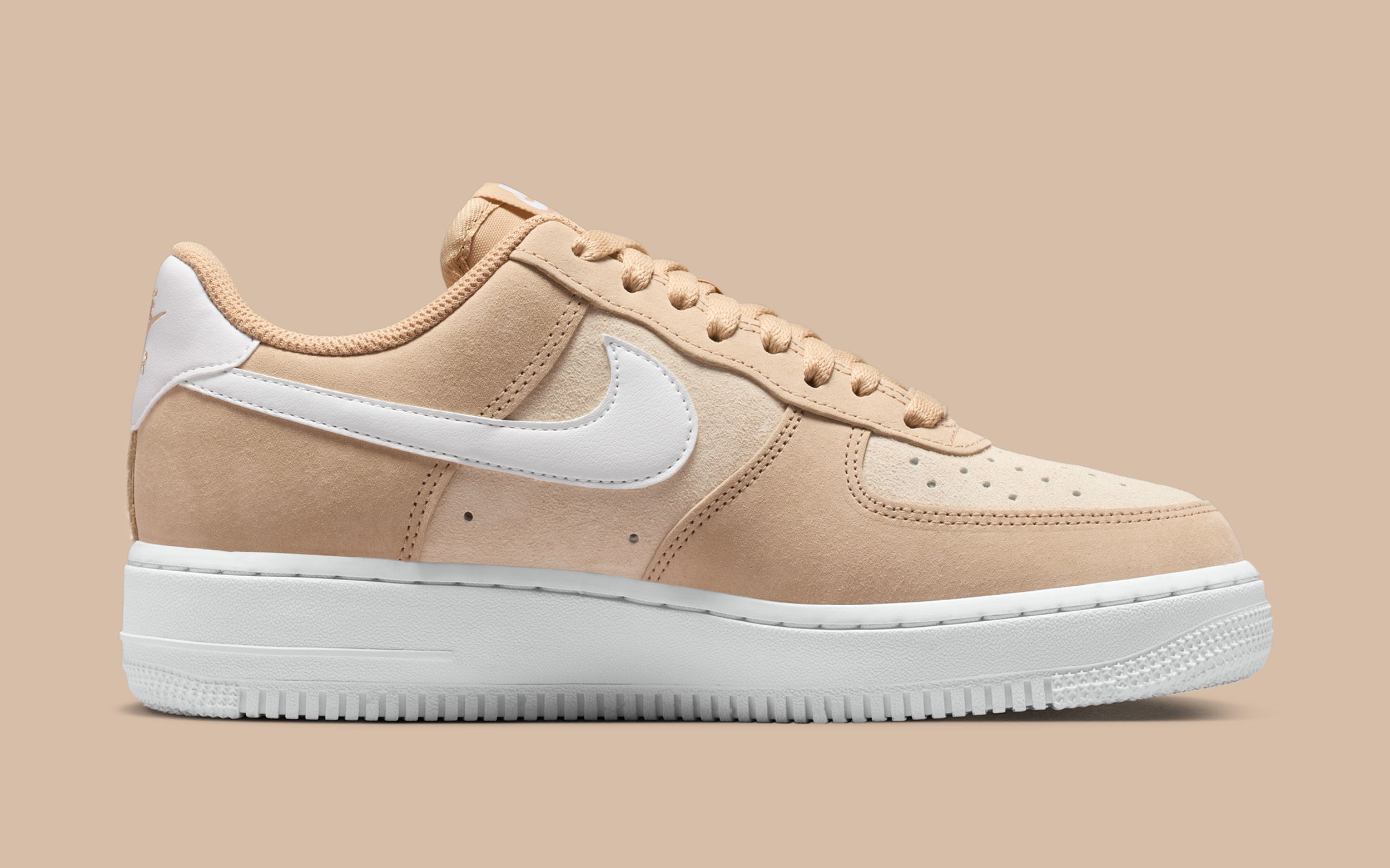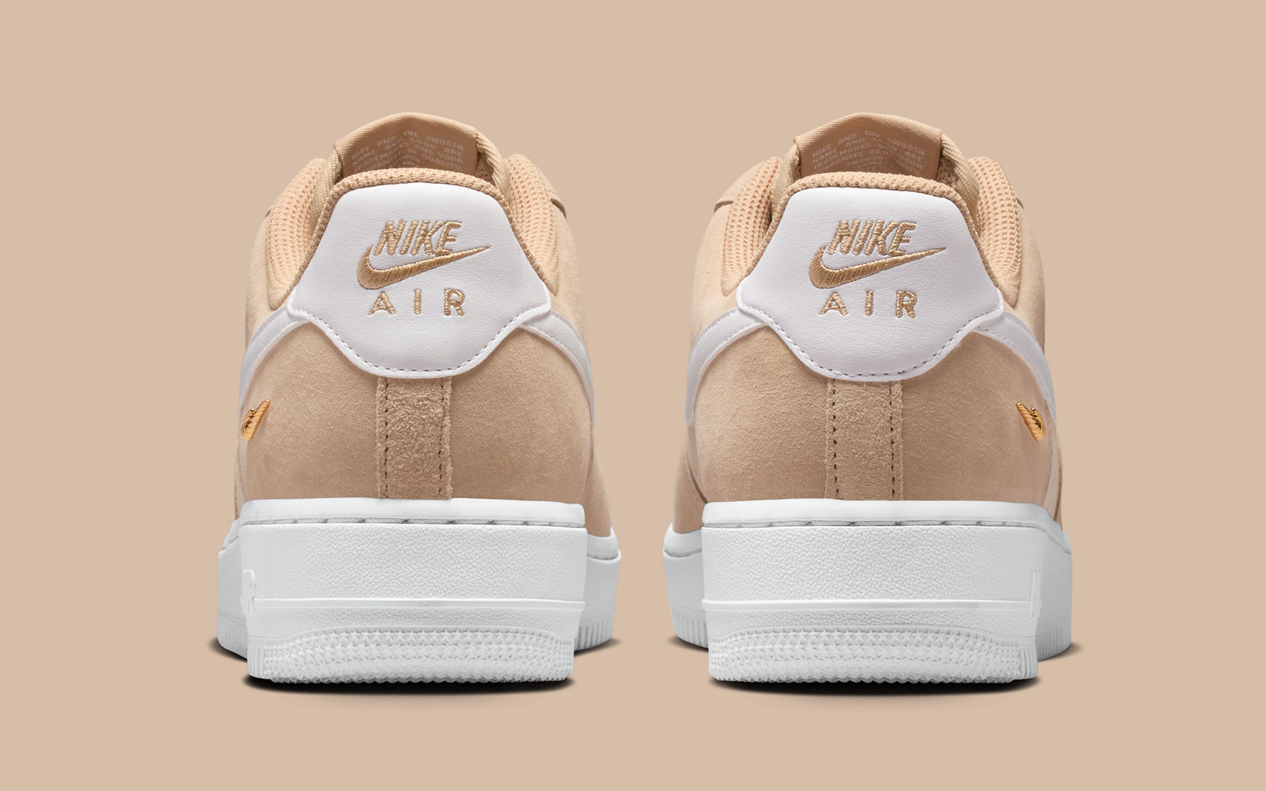 The Nike Air Force 1 Low “Linen & Sanddrift” pairs a smooth suede upper with a tonal blend of beige and light tan, balanced by clean white leather Swooshes and heel tabs. The suede finish gives the shoe a slightly elevated feel while still respecting the original AF1 DNA. Subtle hits of metallic gold add a premium touch, appearing on the mini Swoosh at the heel and tongue branding. Underfoot, the white midsole and outsole maintain the model’s familiar cushioning and structure, completing a look built for easy everyday wear.