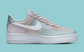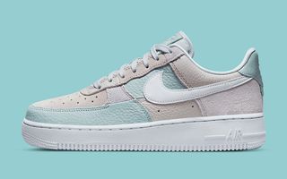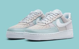 Void of any serious color, the pair arrives in a tonal mix of cool and neutral greys against light blue-greens in leather and suede. Each panel is prepared in its own unique finish and, when combined with the split-blocking at the forefoot and mid-panel, results in a curious collage of material. Suede toes work back into leather and suede eyelets pieced into three sections, with its encompassing toe cap also split into blue and grey hues. Midpanels follow the same mantra, as do the quarters. Bright white Swooshes marry up to the sole units underfoot, with special leather branded tags in the back continue on from the heel overlays and tongue tags in tumbled blue-green leathers to complete the design.