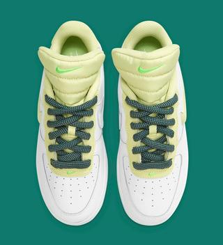 The palette on the "Big Tongue" Air Force 1 Low is as refreshing as a summer afternoon. Anchored by a clean white base, it lets its colors do the talking—quite literally. The rubber outsole and thick laces are awash in a refreshing green, setting the stage for the other standout hues. Then comes the lemon—a color that punctuates the elongated tongue, eyestay, heel overlays, and notably, the protruding jewel Swoosh which graces the profile side.