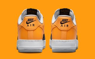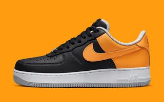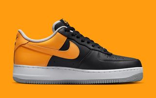 Prepared in classic smooth leathers, the pair settles on black as its base, with Swooshes, quarter panels, and heel overlays all arriving in striking yellow-orange hues. The same tone returns once more for the tongue and insole branding, while an alternate black hits the back. All of this is wedged between white liners and midsoles, with a light grey rubber outsole rounding out the design.