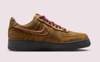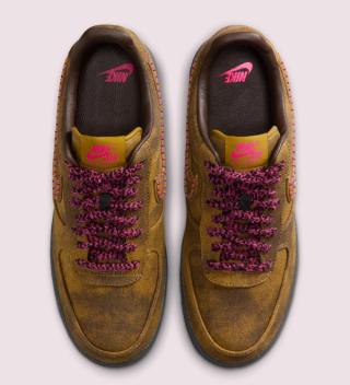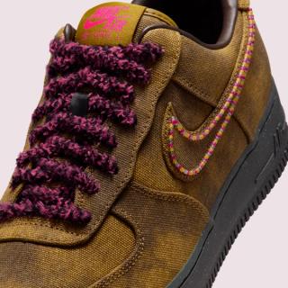 Similar to the "Souvenir" OTW by Vans project that dropped in August and September, the latest from Nike Sportswear features a faux-aged look accompanied by a number of decorative details across the upper. The Air Force 1's "Desert Moss/Midwest Gold/Baroque Brown" color scheme evokes images of Chanel's Graffiti Messenger Bag from 2014's "On the Pavement" collection. Pins and metal hardware don't join the mix, but "Fierce Pink" accents on the tongue, heel, and laces reinforce the sneaker's connection to the high-fashion piece. Beaded profile swooshes and a speckled sole unit round out the ensemble.