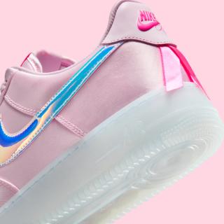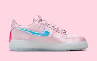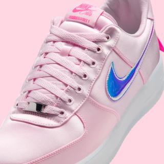 This iteration arrives in a striking Pink Foam satin upper paired with accents of Hyper Pink and a vivid iridescent blue Swoosh. Special details emphasize the cause, including a pink ribbon stitched into the heel, “Awareness” text branding, and clear icy outsoles that keep the palette clean while drawing focus to the symbolic elements. Metallic lace dubraes and layered textures provide an elevated finish that aligns with the Air Force 1’s status as a cultural icon.