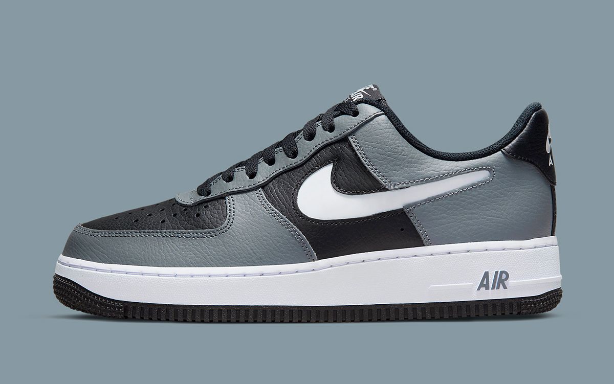 Evoking memories of the famous 3M Snake scheme, the pair arrives in a closely-aligned mix of black leather uppers, color-matched tongues and liners, and a bevy of grey overlay overlays. The latter is, of course, not reflective, nor does it boast a light grey finish, instead opting for a darker, cooler leather finish, It’s Swooshes are in-set in a piercing white — and no they’re not shown to be reflective, either. All of this comes to a close on a simple white and black sole unit, with grey AIR lettering on the midsole completing the design.
