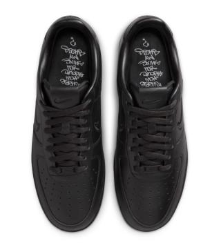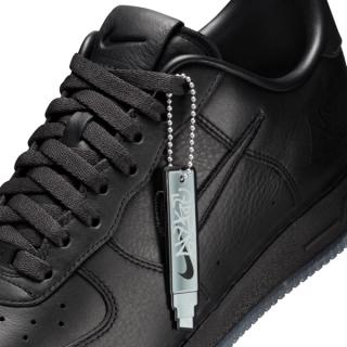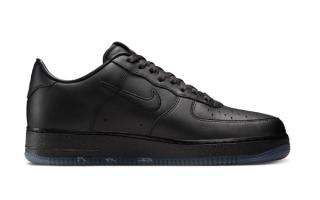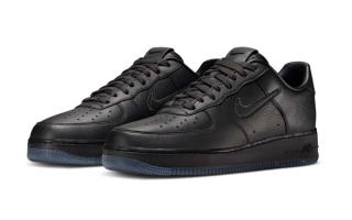 At quick glance, the latest Nike Sportswear offering is just another "Triple Black" pair, but closer inspection reveals otherwise. The sneaker features tumbled leather panels that are stamped with a special NYKE logo on the lateral heel, done like a tag on NYC streets. Other branding elements across the upper are also reworked. A marker-shaped hangtag accompanies the AF-1, which boasts a message often spoken by characters in Fight for NY: "While you're down there, how about you shine my shoes?"