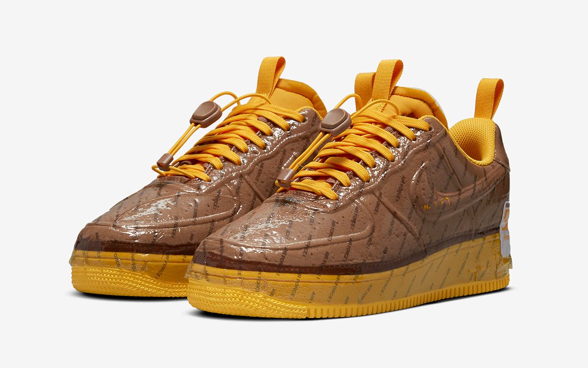 The all-new aptly titled Air Force 1 Low Experimental has now produced a handful of colorways, each of which houses is unique one-piece foam shell upper under a plethora of translucent tape. This next release does so again, however, this time sheaths the pair branded tape. Oh, and there’s also the absolutely obscene Chocolate Peanut Butter color palette that goes with it.