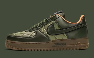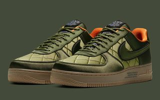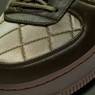 OG Post 12.04.19 // Immediately triggering thoughts of 2017’s “Flight Jacket” Air Jordan 6, this Air Force 1 Low of the same name continues a theme that’s militaristic as much as it is modish. It arrives in a like quilted olive satin upper, overlayed by the same material in a slightly darker shade — sans the quilted effect. Double-layered Swooshes reveal a 3M reflective pop beneath, with orange liners reminiscent of Undefeated collaborations of early last decade. Adding to the militaristic charm is ballistic mesh tongues, inverted and elongated tongue tags, and gum rubber outsoles complete with exterior test-made branding.