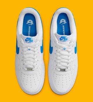 In this updated rendition, the shoe introduces a vivid deep royal blue accent, which adds a pop of color to the design. You'll find this striking hue on the profile Swoosh logos, tongue, and heel tabs, creating a captivating contrast against the predominantly white upper. The inclusion of the deep royal blue outsoles further complements the color scheme, tying the entire design together seamlessly.