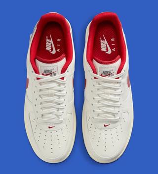 The new Air Force 1 boasts a smooth sail leather upper that exudes understated elegance. Its midsole bears a slightly darker tint, achieving an appealing aged look that enhances the pair's vintage charm. The vibrant reds infused into the design steal the show, creating dynamic contrast and stunning visual effect. These pops of red are strategically located at the liner, outsole, heel overlay, and the oversized midfoot Swoosh, catching the eye and adding to the shoe's unique character.