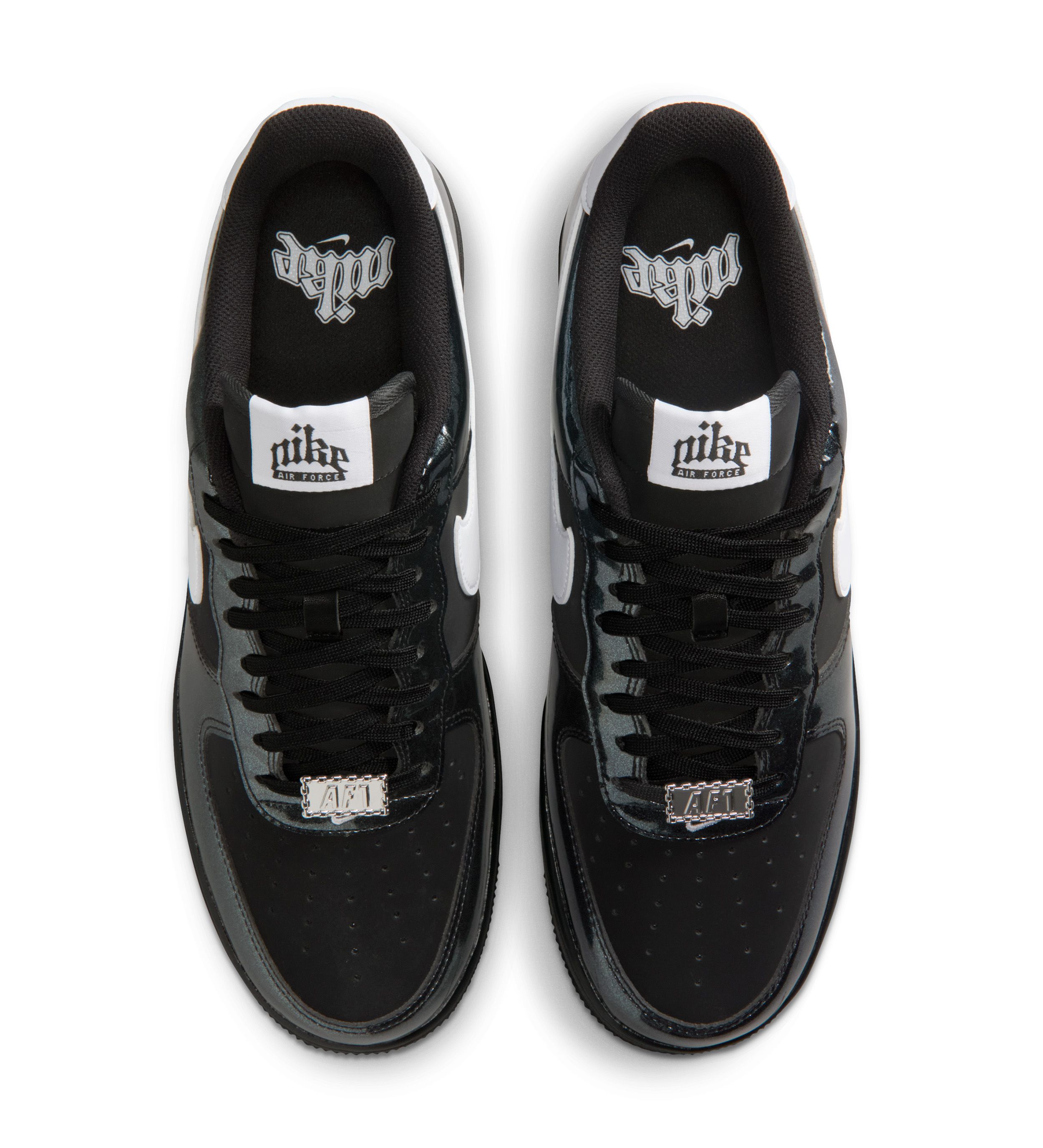 Details throughout reinforce the pack’s elevated direction. Metallic lace dubraes add jewelry-like flair, while tonal midsoles and outsoles keep the silhouettes grounded despite their high-shine uppers. Subtle Nike Air Force branding on the tongue and heel completes the look without distracting from the materials themselves.