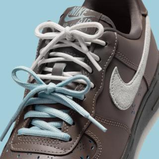 The Nike Air Force 1 Low arrives in a rich brown leather build, offering a clean and premium base that feels more refined than your standard GR. From there, the updates begin to stack up. Patterned perforations appear across the toe box and quarter panels, adding a decorative touch that moves away from traditional AF1 tooling. The Swoosh is rendered in a textured suede finish, while light blue accents bring contrast through branding hits and detailing.