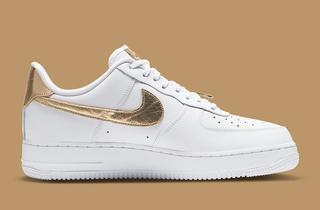 Update 10.16.20 Retailers Finish Line have confirmed a release for this White/Metallic Gold Air Force 1 for November 18th. If you are planning on picking up a pair on the day, be sure to head over to our dedicated Nike Release Dates Calendar to set yourself a reminder for the drop!In related news, this Air Max 97 ith like gold foil finishes and matching encrusted Swoosh dubraes also release the same day.