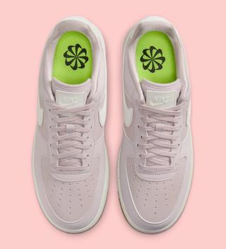 This Air Force 1 variation stands out with its pebbled, violet-colored leather adorning the toe, eyelets, and quarter panel. The tumbled and worn appearance of the leather brings a unique character to the shoe, differentiating it from its classic counterparts. Including a contrasting leather Swoosh adds a visual depth, harmonizing with the shoe's luxurious feel.