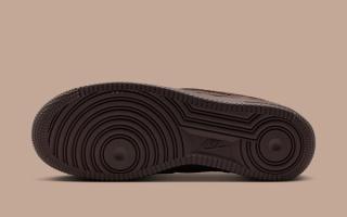 Matching brown laces, tongue, and lining reinforce the tonal approach, while the midsole and outsole are finished in the same Baroque Brown for a fully unified look. A metallic AF1 lace dubrae offers the only hint of shine, breaking up the otherwise matte presentation.