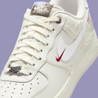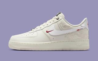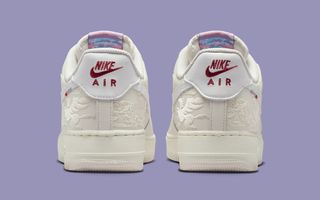 The Nike Air Force 1 Low “Pegasus Pack” edition leads the collection with a clean, "Phantom" build layered in subtle storytelling. The leather upper arrives in a soft ivory finish, paired with embroidered details that mimic swirling clouds and mythic linework across the heel panels. A white Swoosh anchors the profile, while a secondary mini Swoosh in deep red adds a sharp visual break.