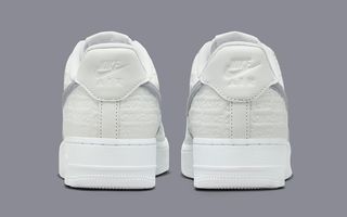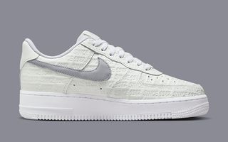 Here, you’ll notice its OG High-inspired build, with an all-white make-up met with grey Swooshes. Here, though, the upper takes on a warm “Summit White” tint and — much more noticeably — an all-over debossed design that reads “Since 1982.” — the year the design was first released.