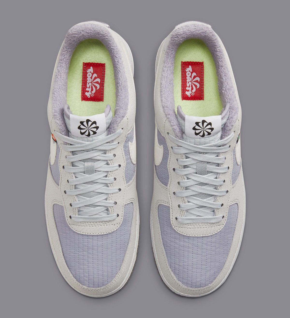 Forming part of a wider warm and cozy collection, this insulated Air Force 1 also doubles up as part of Nike’s Move to Zero campaign, with recycled pieces rife through the pair, including at the sole unit, Swoosh, and overlays. The upper panels all arrive in quilted nylon of grey hue, again housing comforter-like heat-retaining properties. Plush fleece liners and insoles which showcase the trademarked “Toasty” tag are the most obvious callouts to the sneaker’s toe-warming attributes, as are Nike’s special external tags that channel traditional insulated outwear. The pair is then completed by the Swoosh’s repurposed Move to Zero Pinwheel logo at the tongue, and 3D-stitched Swooshes in the rear.