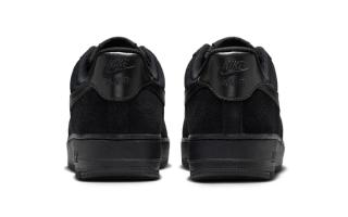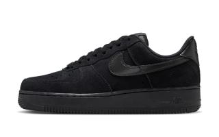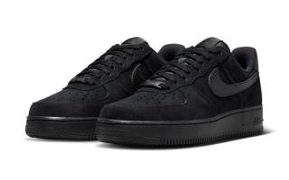 The Nike Air Force 1 Low “Black” edition follows a similar approach but pushes the monochrome concept further. The all-black suede upper is paired with a matching black Swoosh and midsole, resulting in a stealthy build that relies purely on texture for visual depth. Small details, such as the tonal lace dubrae and embroidered tongue branding, maintain the model’s classic identity without disrupting the minimalist aesthetic.