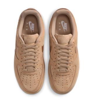 Leading the collection are two initial pairs in “Linen” and “Black,” each built almost entirely from tonal suede. The Nike Air Force 1 Low “Linen” version arrives in a soft tan palette, covering the upper, midsole, and laces in matching shades while a glossy metallic Swoosh adds a subtle highlight along the sidewalls. At the heel, a polished bronze-like tab stamped with Nike Air branding reinforces the pack’s metallic theme while keeping the overall design understated.