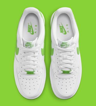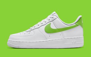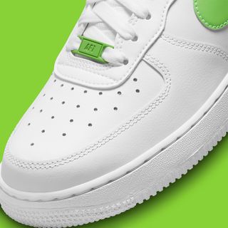 Nike has done it simply. Take a triple white Air Force 1 Low, and add a few splashes of color. Well, one color, as the titular “Action Green” lends its Kermit-like tint to the Swoosh and heel overlays, tongue branding, and dubraes. And that’s all it takes.