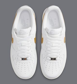 Anchored in a staple white leather upper and sail sole unit, Nike looks to add some emphasis to the colorway through metallic gold Swooshes, and metallic silver heel overlays. The latter is then mimicked on the branding at the tongue and insoles, as well as the dubraes, to complete the design.