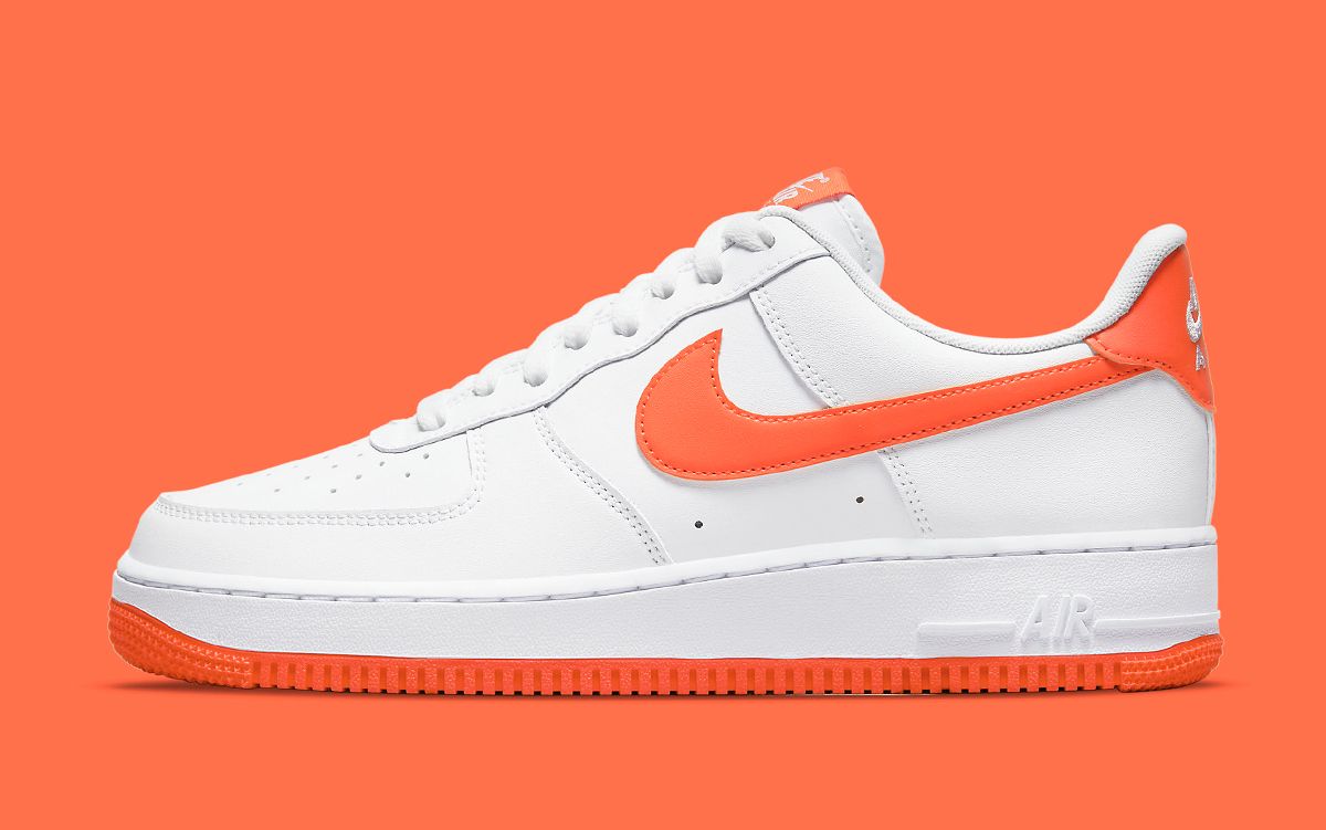 Starting out with a classic smooth white leather base, the pair then presents with select pops of vibrant orange; Tongue tags, Swooshes, heel overlays, and outsoles all feature the hue — and when set against a striking white base it’s outstanding. How something so simple can make such a statement? Only the Air Force 1 knows how to do that, and boy it does it well on this pair.