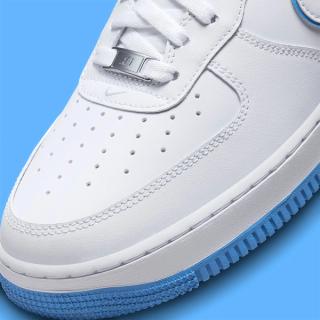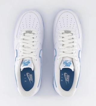 The Air Force 1 Low never looks better than it does in pure white, but a case can be made for any pair that introduces a solitary complimentary color — especially when that color is University Blue.
