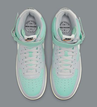 Anchored by an upper of Enamel Green canvas, the pair quickly switches things up to a cooling Grey Fog leather across the toe, heel, and eye stay overlays. Straps return to green, though this time in leather, before Swooshes, rear overlays, and sundries arrive in bright white finishes. Underfoot sits a sail sole unit, with the interior counterpart and inner tongues featuring the Swoosh’s own stamp of approval; Certified Fresh.