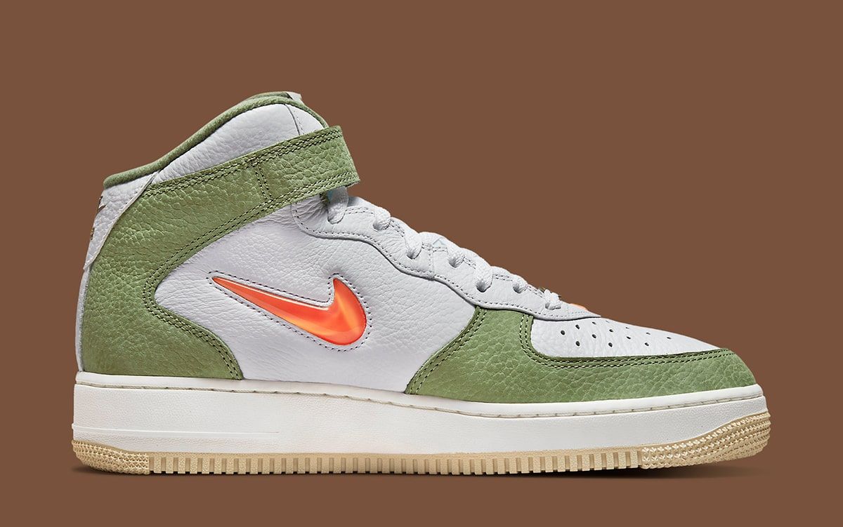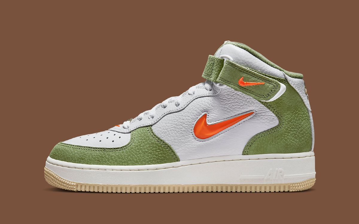 Over the past few years, Nike has kept their cult-followed Air Force 1 Mid on ice, instead, shifting their focus heavily towards the widely-loved Low. But with the silhouette now in the midst of its 40th-anniversary celebration, it’s all hands (and models) on deck. It made a triumphant return on a duo of NYC-themed releases, and will also lend itself to collaborations from Stussyand OFF-WHITE in 2022, too. Before we get there, the Swoosh has recently unveiled a handful of new GR drops, including the return of the “Independence Day” colorway, and now, this all-new option in white, olive, and orange.